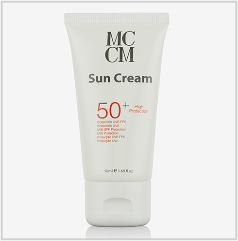 MCCM Crema solar SPF 50+ oil free protege frente a las radiaciones UVB y UVA y previene el fotoenvejecimiento, el eritema solar y la aparición de manchas y manchas.